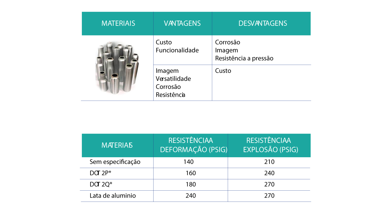 Deve ter uma resistência a explosão de 1.5 vezes a pressão interna a 55° (49CFR173).