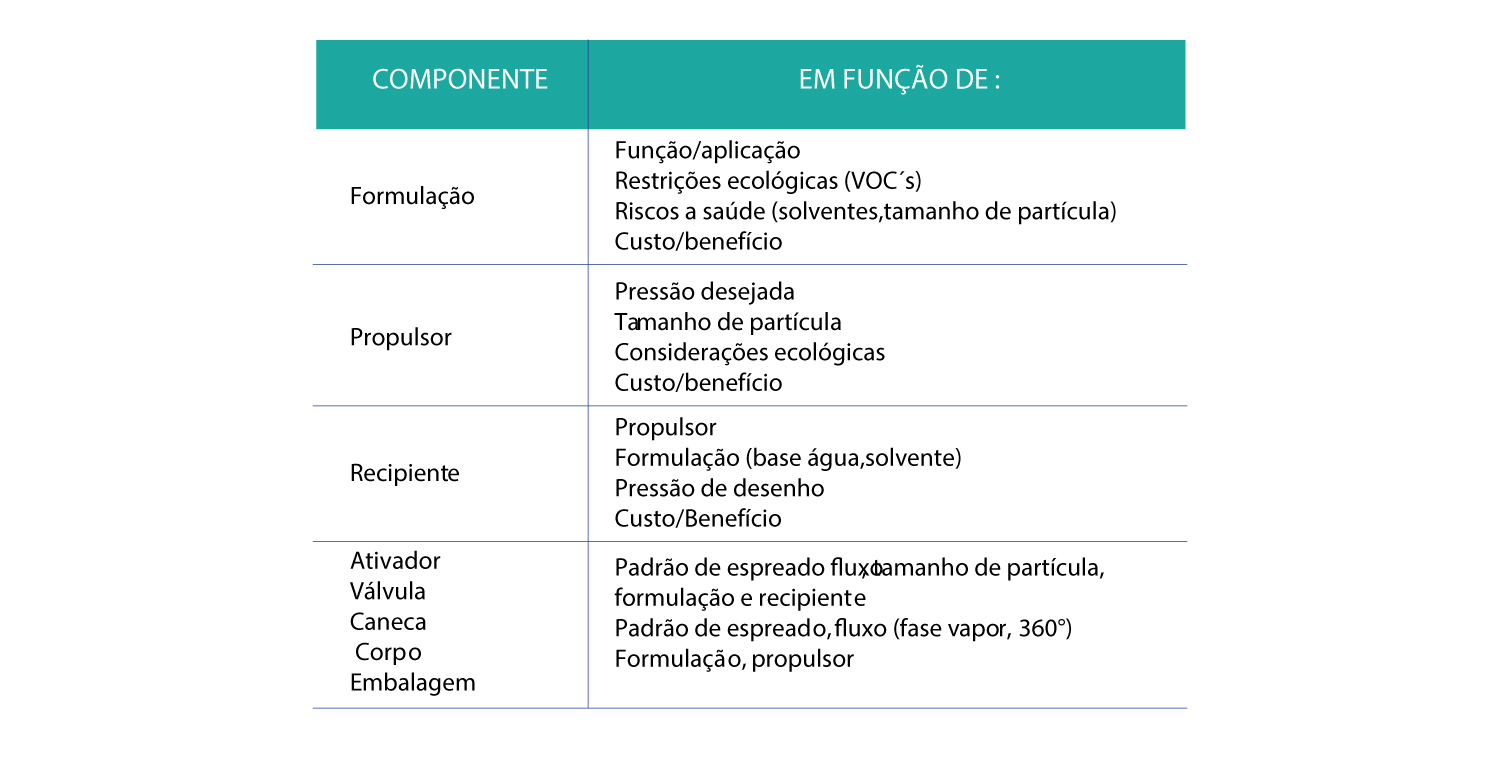 * É importante considerar os efeitos a saúde e ao meio ambiente quando estamos formulando um aerossol, além da questão econômica.