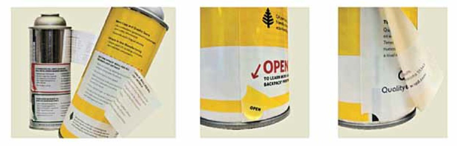 Para este problema existe la posibilidad de emplear etiquetas que se adhieren al cuerpo del contenedor, las cuales, además de vestir al aerosol, le es factible proporcionar más datos importantes para el consumidor al abarcar mayor espacio disponible para este fin.