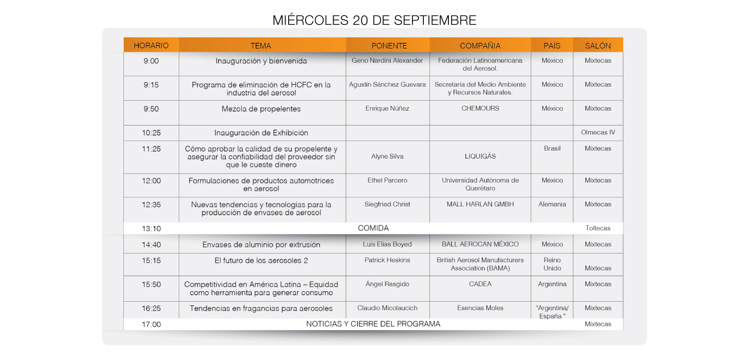El momento ha llegado, estamos listos para recibir a los más de 1000 visitantes de todo el mundo. Estamos listos para ofrecerles la mejor hospitalidad, la mejor jornada de conferencias con los temas más relevantes en la industria del aerosol, impartidos por expertos y líderes en la materia. En este congreso estarán presentes las empresas especializadas en la producción de aerosoles a nivel mundial.