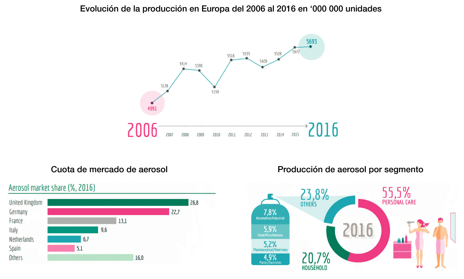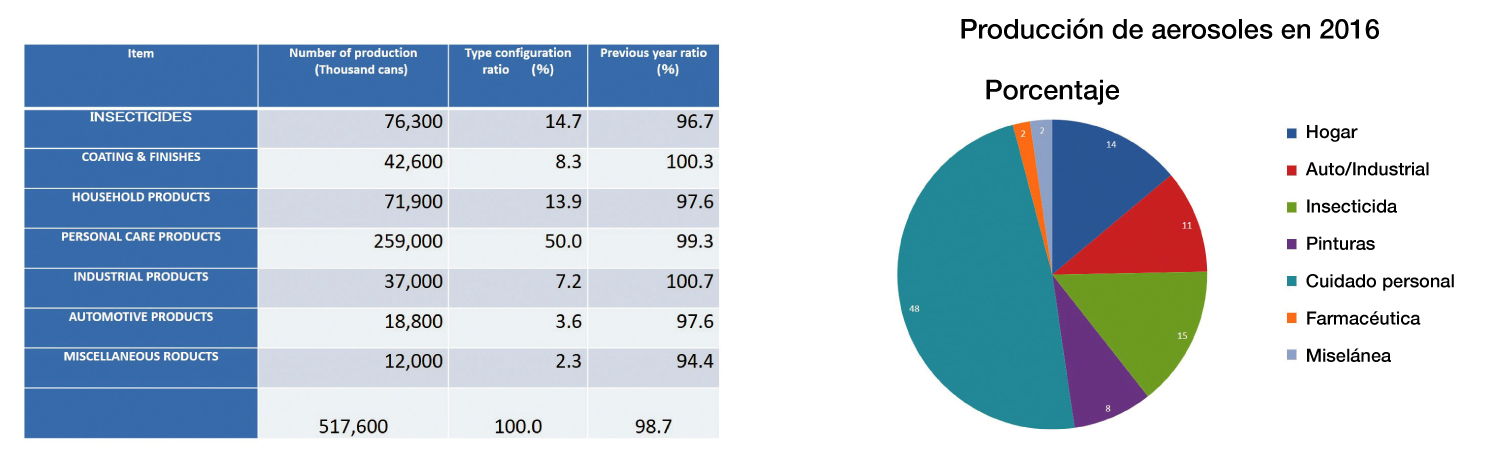 Hay varios empacadores que trabajan con su propia marca y productos de marca privada. La producción de aerosoles se concentra en insecticidas, cosméticos, hogar, productos industriales y automotrices.