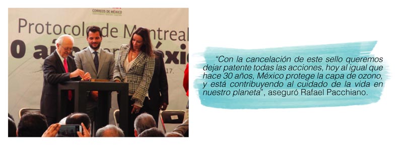 Durante esta ceremonia realizada en el Bioparque San Antonio, al sur de la Ciudad de México, se canceló la estampilla postal conmemorativa denominada “Protegiendo la Capa de Ozono”.