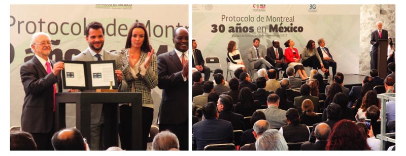 Así mismo se entregaron reconocimientos a instituciones y empresas que destacan por su contribución en la implementación del Protócolo de Montreal: