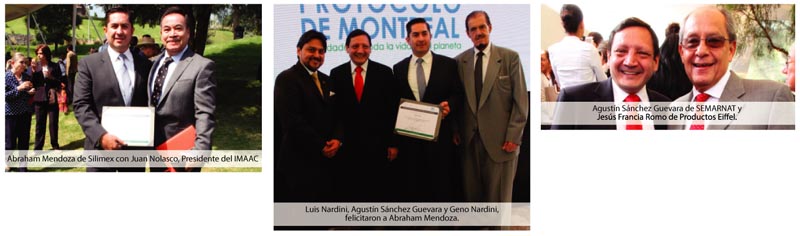 El Ing. Abraham Mendoza, director general de Silimex, también fue condecorado por la eliminación de sustancias agotadoras de la capa de ozono, en la fabricación de aerosoles, en la planta de la Ciudad de México.