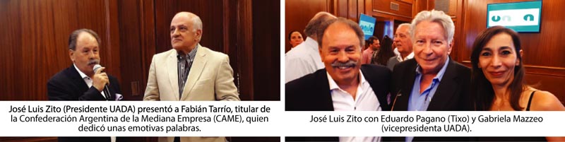 El pasado 12 de diciembre se celebró la cena de fin de año de la UADA, para despedir el 2017, en el salón Arturo Frondizi de la sede de la Confederación Argentina de la Mediana Empresa (CAME) en Buenos Aires, Argentina. A esta reunión asistieron aerosolistas, empresas proveedoras, funcionarios de distintos organismos estatales y directivos de instituciones del gremialismo empresario.