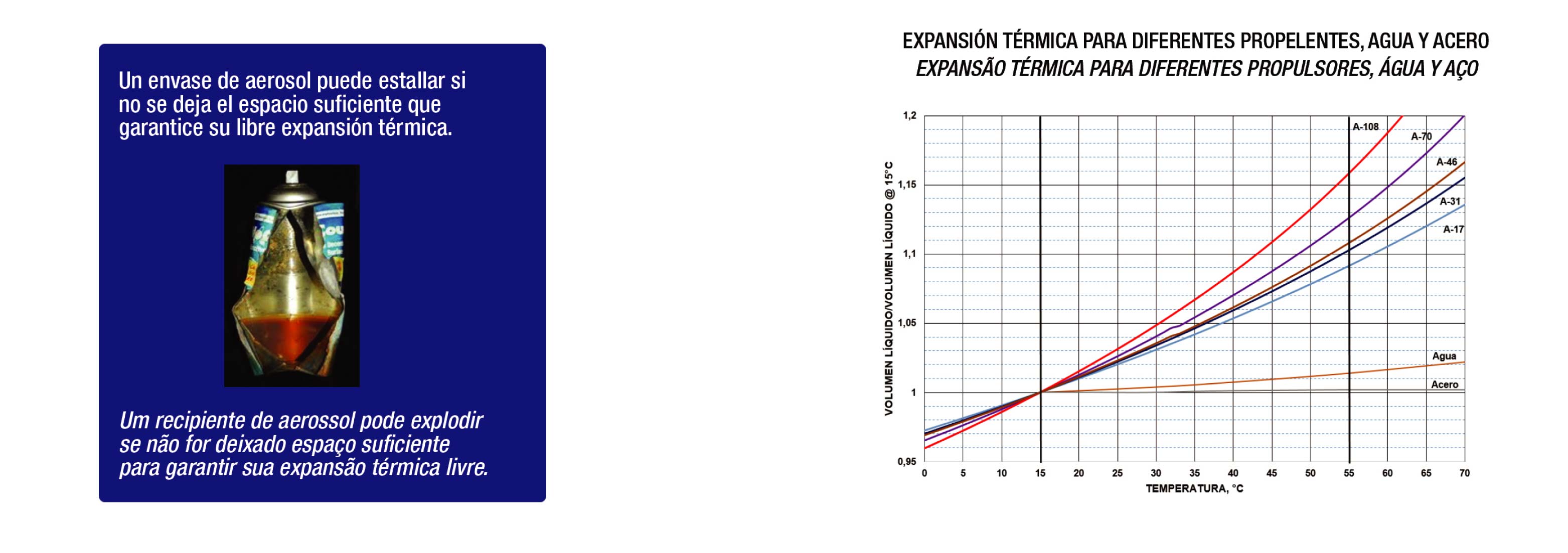 La expansión térmica de la fase líquida puede originar la explosión del envase.