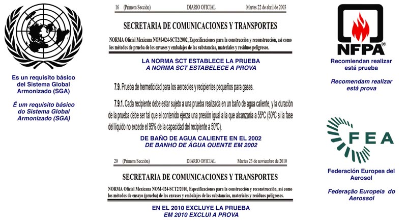 El Comité Técnico de Seguridad del Instituto Mexicano del Aerosol (IMAAC) y de la Federación Latinoamericana del Aerosol (FLADA) recomienda realizar está prueba a todos los aerosoles antes de su almacenamiento, transporte y comercialización.