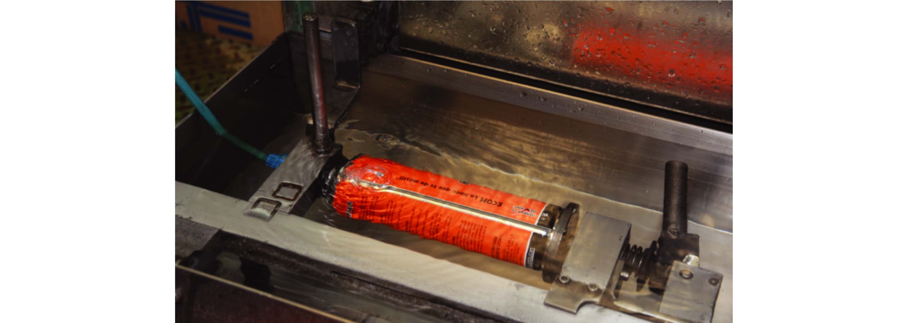 Es sumergir a todos los aerosoles en una tina con agua a 55°C para aumentar su dilatación térmica y el aumento de presión de vapor. Cuando aumentamos la temperatura aumentamos el movimiento de las partículas y por lo tanto la distancia entre ellas, aumentando la presión interna de cada aerosol.