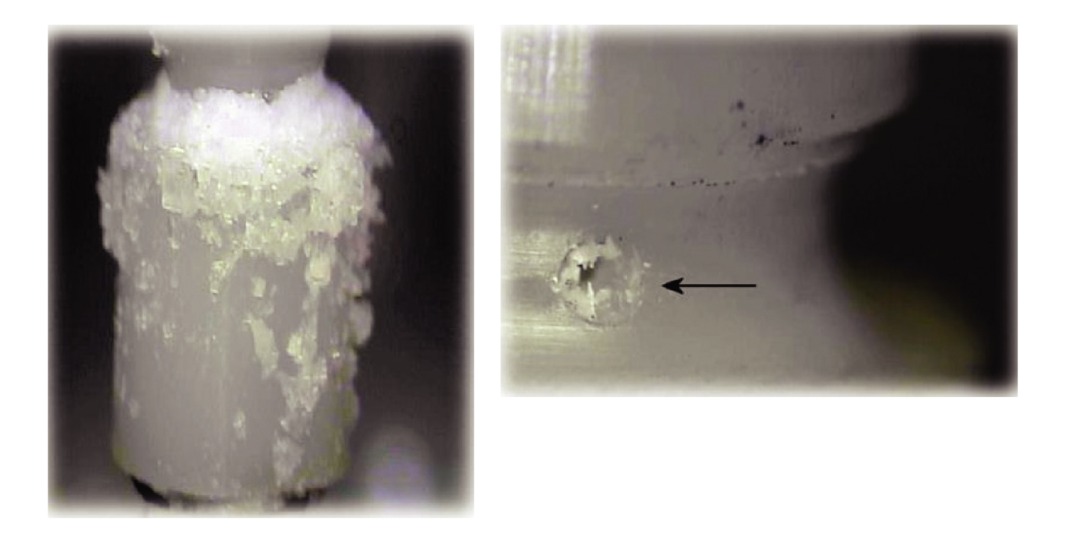 Também existem produtos que tendem a aderir ao tipo de material do qual está feita a haste. As hastes comumente estão feitas de nylon, embora para algumas coisas se utilizam outros materiais, para coisas mais específicas. Existem produtos que se aderem ao nylon e começa a bloquear e a cristalizar nessa zona.