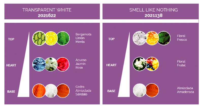 Esta tendencia está cargada hacia el tema de la sensualidad. En estas categorías también hay una necesidad de extracción de frescura máxima.