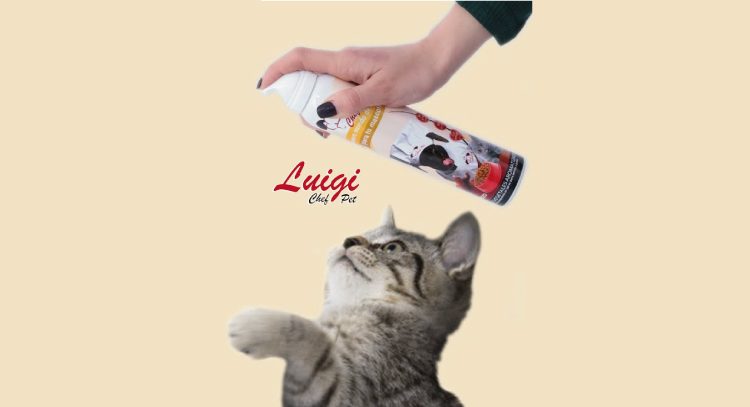 Luigi Chef Pet es un nuevo saborizante en spray, un condimento cien por cien natural. Sin colorantes, sin gluten y sin sal añadida. No provoca alergias ni intolerancias estomacales. Proporciona un sabor único que hará, como decimos las delicias de su perro o gato. En la actualidad se pueden encontrar cuatro variedades con aroma de salchicha, queso, anchoa y chorizo. Su objetivo es dar una pequeña alegría diaria a nuestro perro o gato a la hora de la comida. Estos originales spray están indicados —con un solo toque— tanto para perros como para gatos. Además de conseguir que la comida sea más atractiva le proporciona un extra de vitaminas y solo grasas saludables. También mejora el pelo y la piel, la circulación sanguínea. Cada uno de los envases contiene un 98,4% de aceite de maíz (rico en omega 6 y 9), 0,6% de aceite de pescado y un 1% de aromatizante natural de queso, salchicha, chorizo o anchoa. Por el momento existen en el mercado estos cuatro sabores, aunque se ampliará la oferta.