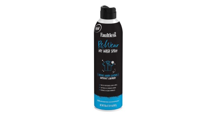 Faultless Brands lanzó el ReWear Dry Wash Spray un producto similar a un champú de lavado en seco, pero para la ropa. El objetivo de este producto revolucionario es abordar una necesidad y tendencia real del consumidor, que es lavar menos la ropa y les permite mantenerla fresca. ReWear captura y elimina los olores y las arrugas, además de que hace que las prendas sean resistente a las manchas. Menos lavados pueden ayudar a que la ropa dure más, incluida la retención de su forma, tamaño y color, dijo. Pero el spray también ahorra tiempo y dinero a los consumidores.