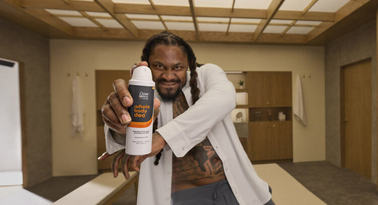 Dove Men+Care se asoció con la ex estrella de fútbol americano de la NFL Marshawn Lynch para promocionar nuevos desodorantes en aerosol para todo el cuerpo. Un estudio reveló que el 63 % de los hombres aún desconoce que existen soluciones para el mal olor corporal, por lo que la marca en asociación con Lynch pretende aumentar la conciencia sobre su desodorante corporal con sus nuevos productos en aerosol.